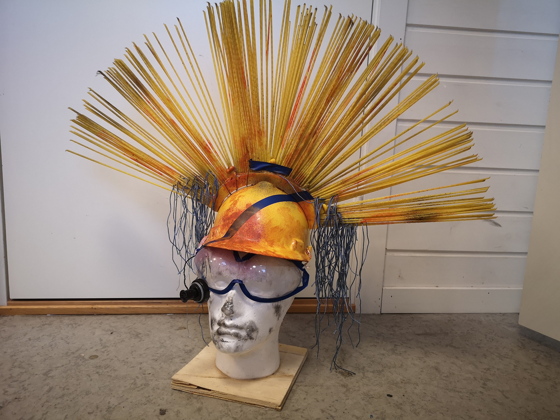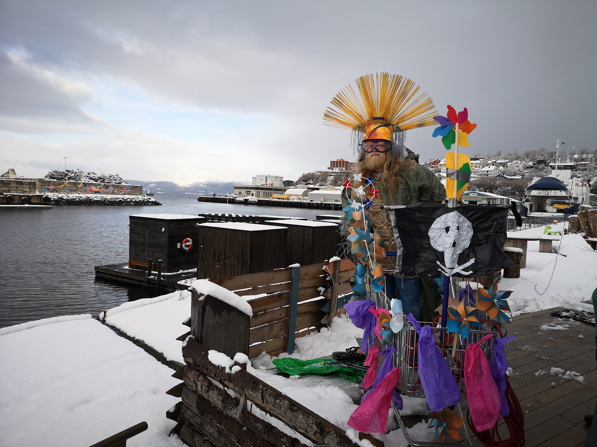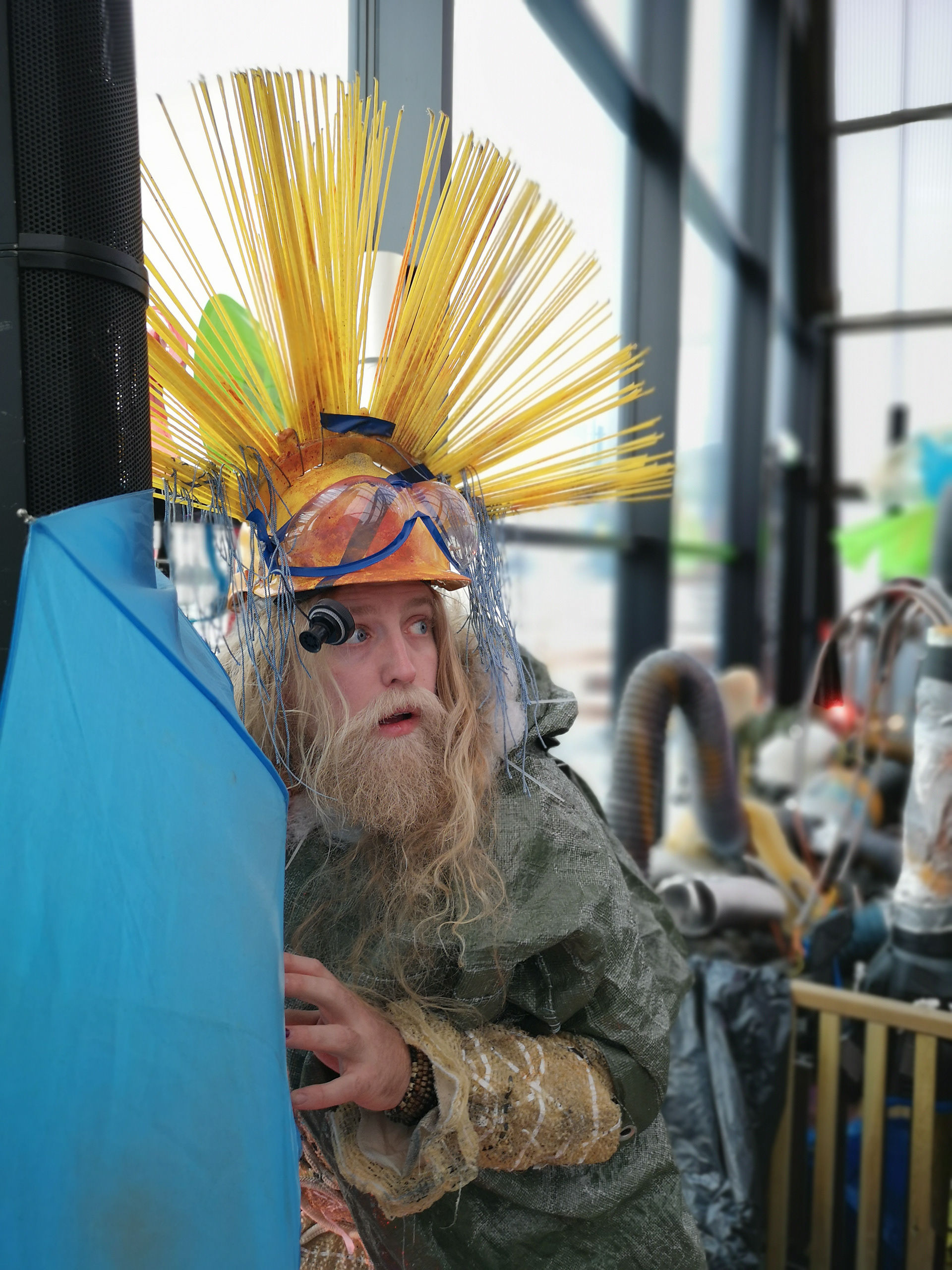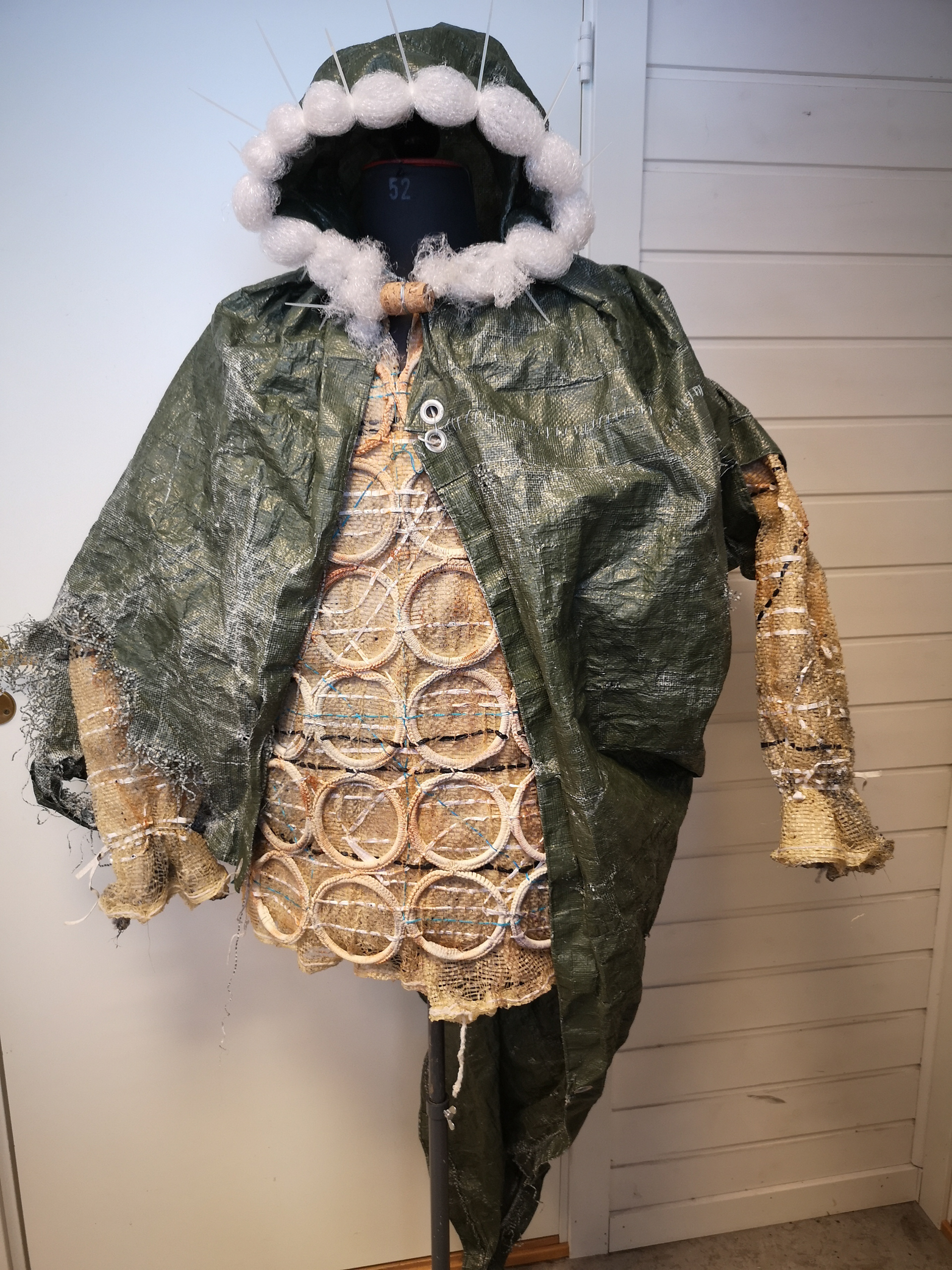 Skatten på Søppeløya(2023) Teater Basun Regi: Christine Therese Aspenberg Scenografi: Teater Basun Kostymedesign: Berit Haltvik With Foto: Berit Haltvik With Alle kostymene er laget av søppel og gjenbruksmaterial.